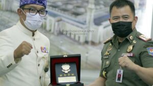 BANDUNG — berdasarkan Surat Dirjen Bina Adwil No. 003/1665/BAK tgl 29 Maret 2021 hal Pemberian Tanda Penghargaan 2021, izin melaporkan kegiatan terkait Penyerahan Tanda Penghargaan Karya Bhakti Peduli Satpol PP yang diikuti oleh Direktur Pol PP & Linmas dan jajaran dari Subdit HAM Dit. Pol PP dan Linmas yang dilaksanakan di Gedung Pakuan, Jawa Barat pada hari Kamis tanggal 1 April 2021.