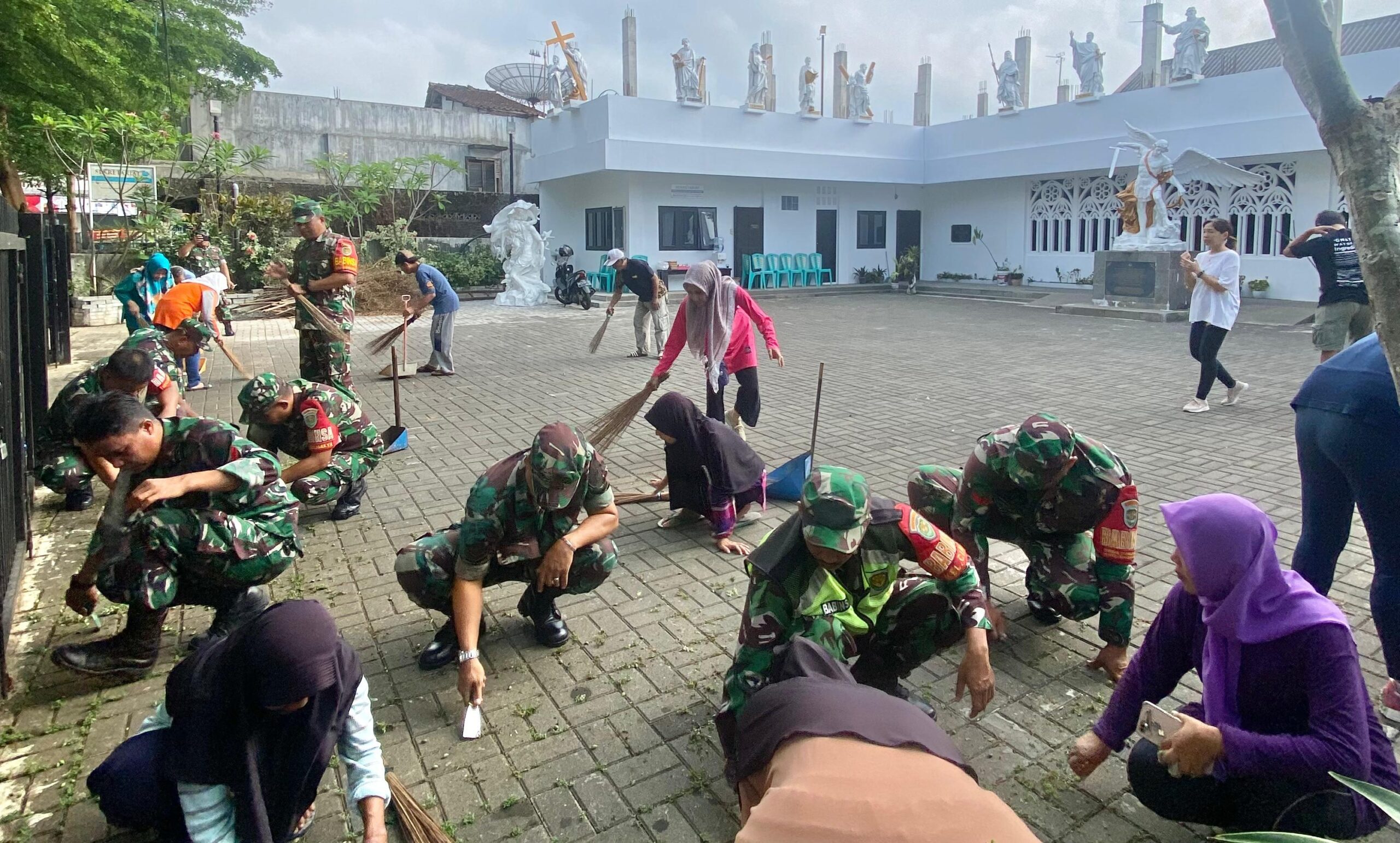 Kegiatan yang tajuk “Giat Sabtu Kasih Sayang” yang diinisiasi oleh puluhan anggota TNI dari Koramil 1301 Ciamis berkolaborasi bersama warga lintas iman bergotong royong membersihkan lingkungan Gereja Katolik St. Yohanes Ciamis. Berbekal perlengkapan tempur kebersihan yang dibawa dari rumah masing-masing, sekitar 35 orang warga yang hadir bekerjasama dengan anggota Koramil 1301 dengan penuh sukacita membersihkan sampah-sampah yang ada.