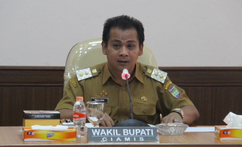 Tidak lupa Wabup juga menyampaikan selamat datangnya kepada tim rechecking Gelari Pelangi tingkat Nasional dan juga menyampaikan permohonan maaf dari Bupati Ciamis Dr. H. Herdiat Sunarya karena tidak bisa hadir pada kesempatan tersebut.